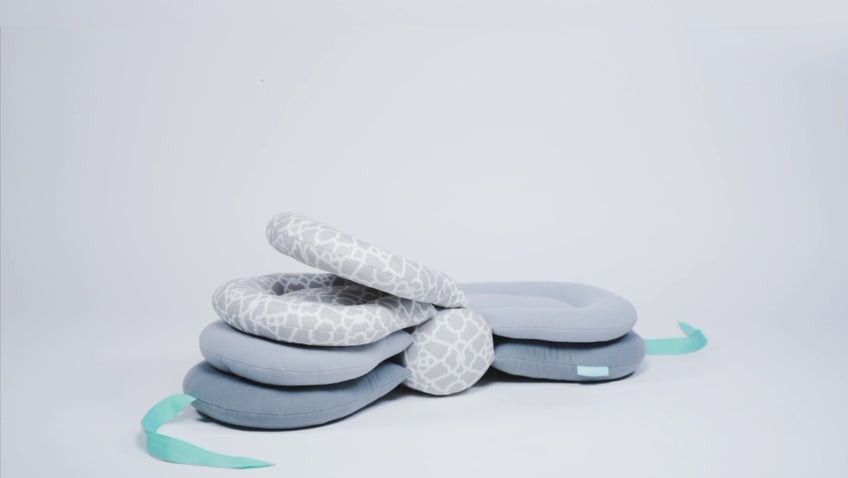- When breastfeeding is complete, fold the pillow in half and secure it with the colourful ribbon for compact, neat storage.