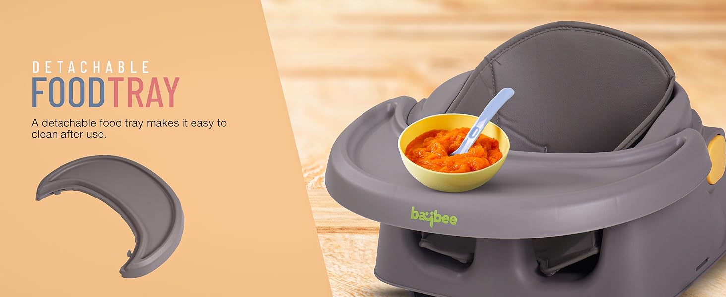 - 【✯ Stress-free cleaning】- The plastic of our chair that goes between the legs is attached to the chair not the tray, so you need to nervous that it might hurt your little one's privates, and no need to worry about the food will falls on your little one's lap when you move the tray away. Easy wipe seat and extra-large, dishwasher-safe tray insert, removable tray liner help prevent spills makes all that baby goo simple to clean.