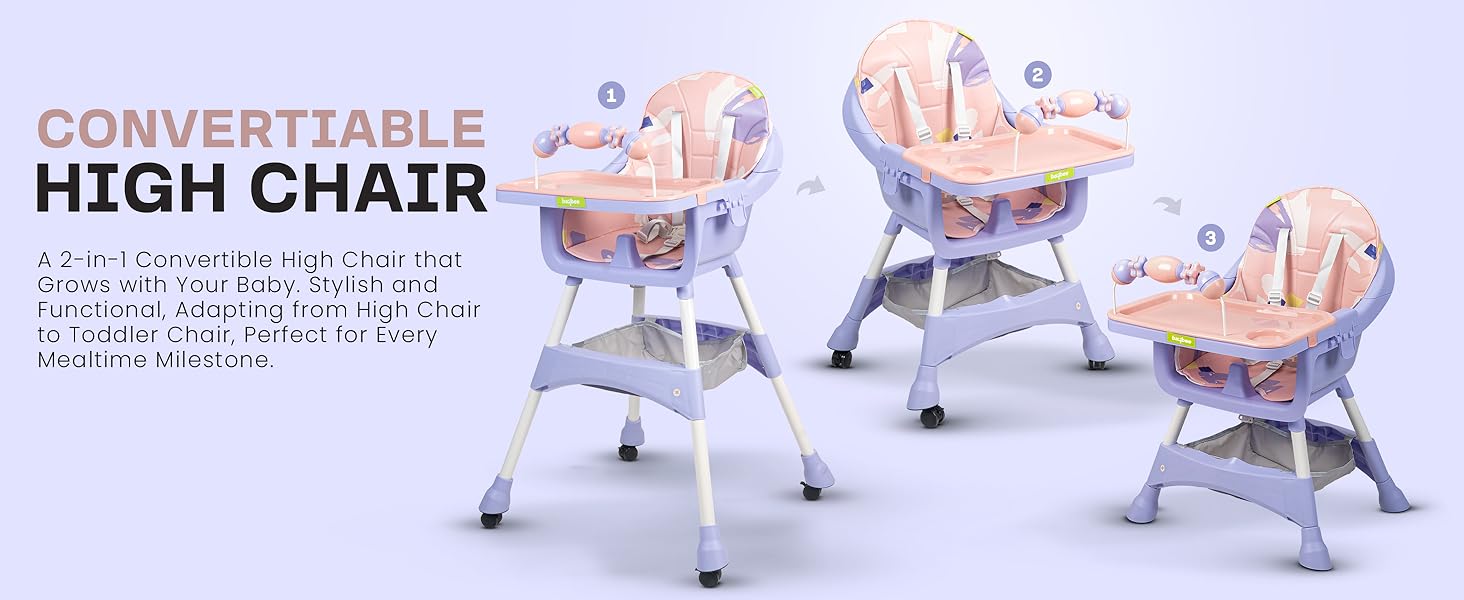 Minikin Aurora Series 3 in 1 Convertible High Chair for Kids with Adjustable Comfortable Seat