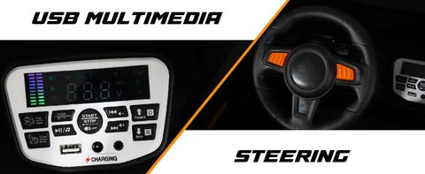 - π[Realistic Driving Experience] Battery Jeep gives your kids realistic driving experience just like a real Jeep with 4*4 Motor, horn, LED Headlights, Bluetooth, Music, Swing, USB, Aux & remote controller, You can connect it to USB port or Aux and play a wider selection of songs and stories. The buttons near the USB port are music modes, horn & volume Control.