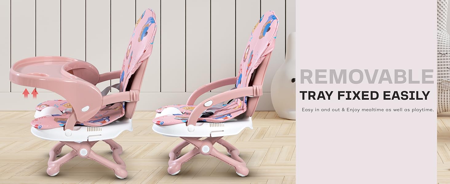- 🌍 Portable and Travel Friendly - Designed for families on the go, the Baybee Luna Booster Chair is lightweight and foldable, making it easy to carry and store. Whether you're heading to a restaurant, visiting relatives, or simply moving it around your home, the portability of this chair ensures that your baby can enjoy their meals comfortably wherever you are.