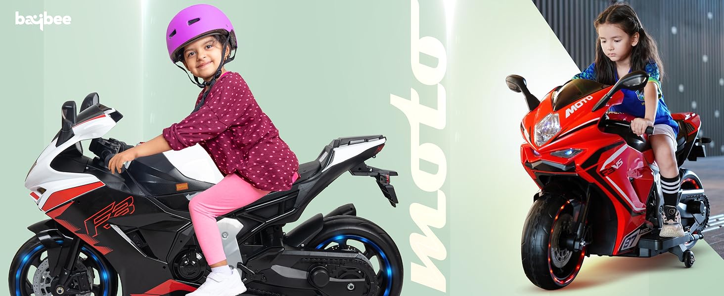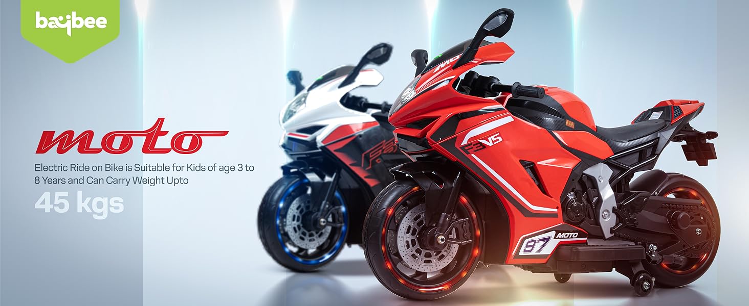 - šļøā Multi Feature Electric Bikeā This Kids bike has an inbuilt music, headlight, USB Port, Bluetooth, on and off switch, Flashing LED Wheels, hand accelerator, foot brake & Side Stand. simply press the Forward-Backward switch then Throttle to move with realistic engine sounds are fun and interactive for kids and It gives a realistic driving experience for your kids
