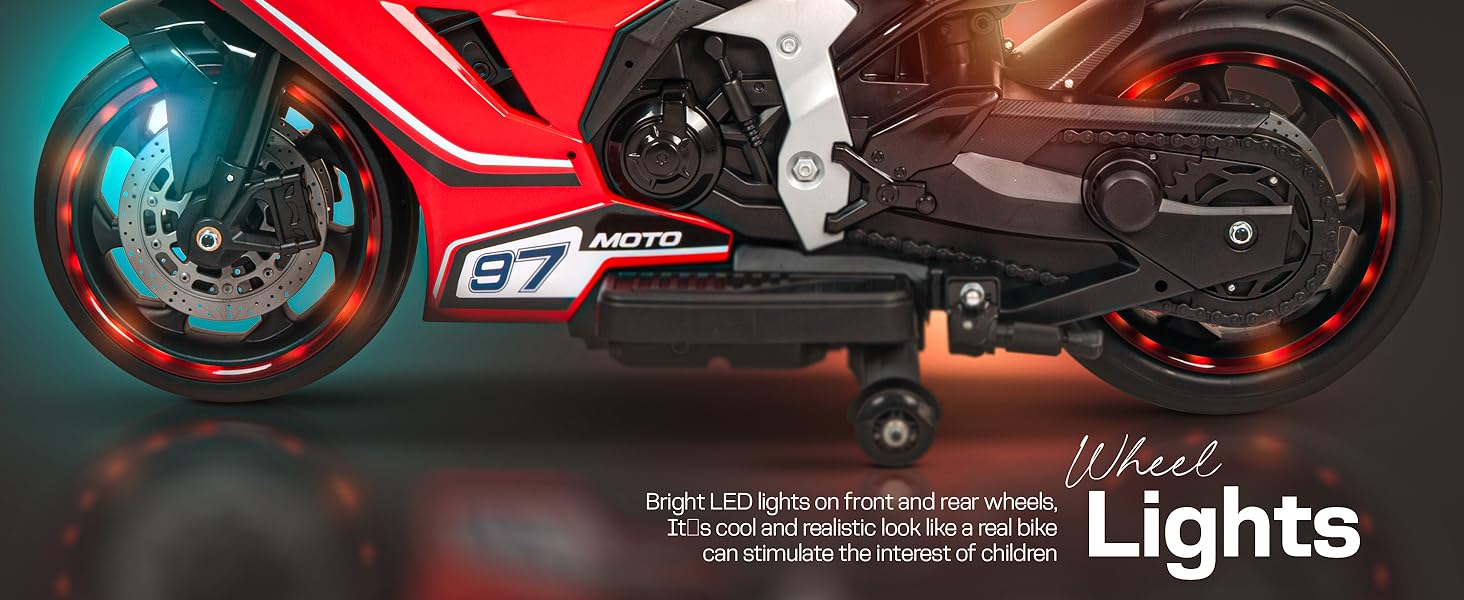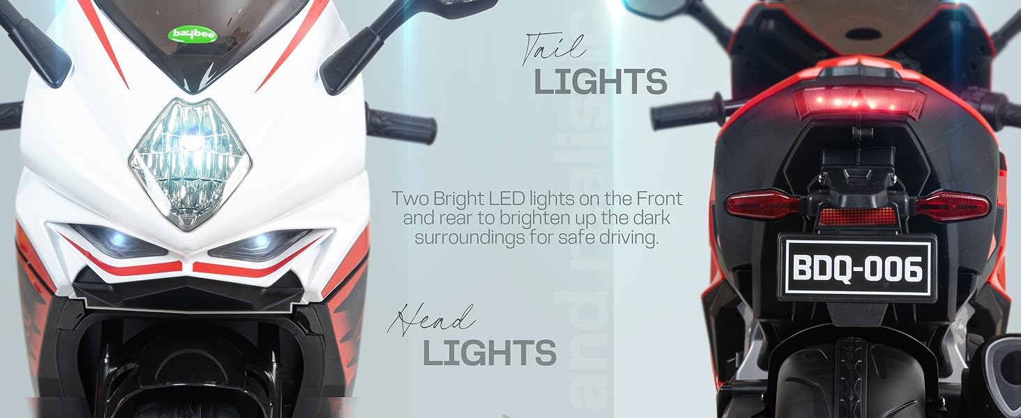 - šļøā LED Headlights for Safe Ridingā Bright LED lights on the headlight to brighten up the dark surroundings for safe driving. Itās cool and realistic look like a real bike can stimulate the interest of children It is a perfect gift for kids and suitable for 3 to 8 years boys girls