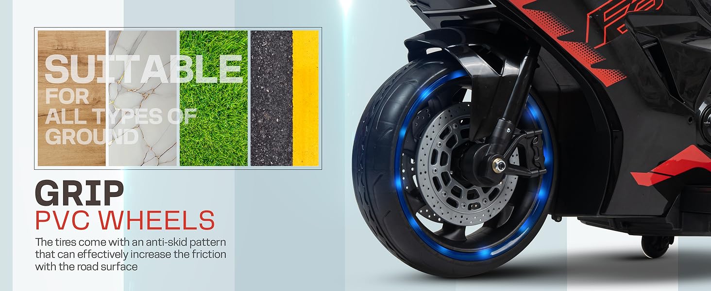 - šļøā Kids Bike with Training Wheels ā The Electric bike comes with a Training Wheel to keep children's balance and free them from the danger of falling over. The tires come with an anti-skid pattern that can effectively increase the friction with the road surface, allowing kids to ride on various flat surfaces