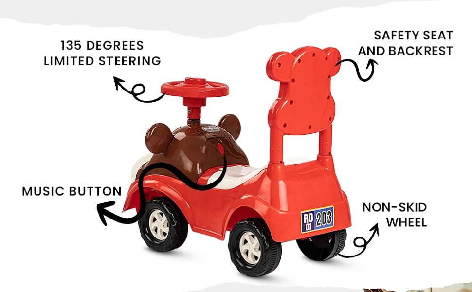 - Ideal gift for your kid – The exquisite outlook and the realistic push car features make this car a perfect gift for your 1-3-year-old. Our push ride-on car can handle a weight maximum of up to 10-15 kg. Your kids can enjoy a fun-filled and safe drive in this ride-on car push car.