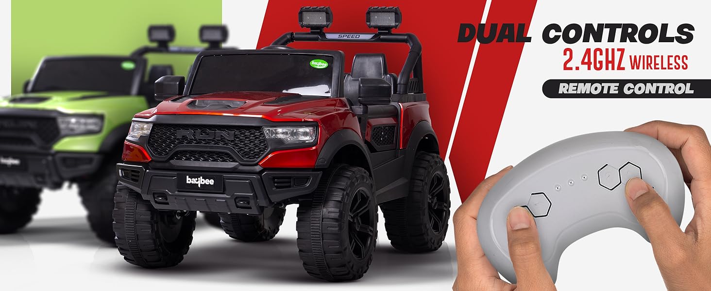 - π [Dual Mode Ride on Jeep] - The Ride on Jeep can be controlled by dual control modes. Parent can help your children control this jeep with 2.4G wireless remote controller or baby can operate this car by himself/herself by step on the accelerator, turn the steering wheel and shift the forward/backward moving mode, your kids will practice hand-eye-foot coordination, enhance courage, and build confidence through this wonderful vehicle