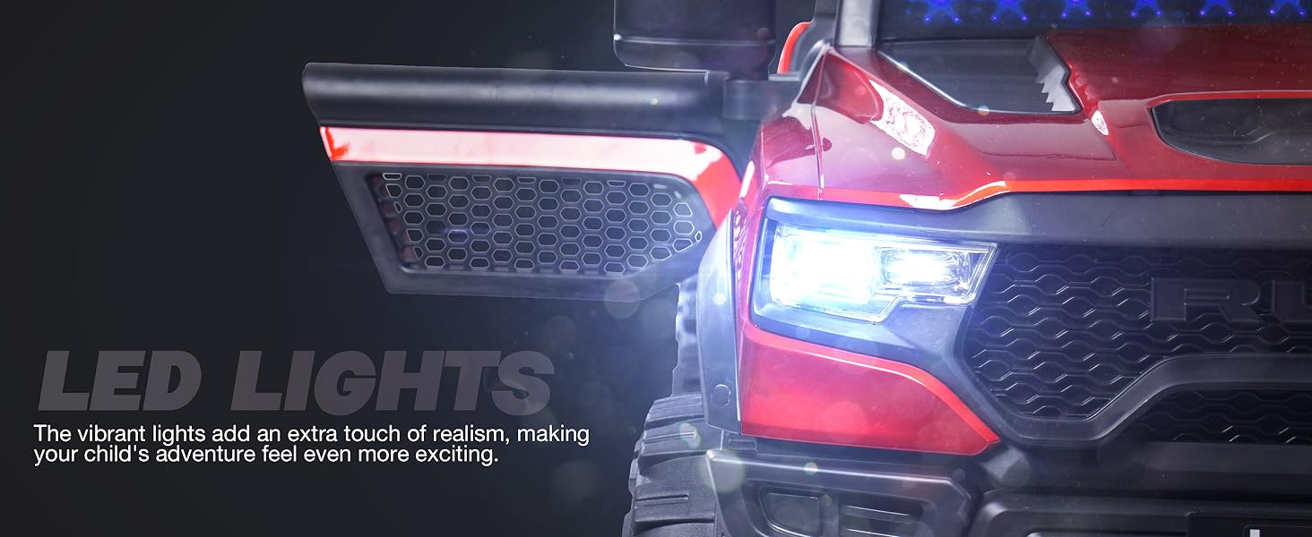 - π [Safe to Drive] - Powerful engine with a slow start for safer use. The bright LED lights on the front of this car allow for safe nighttime driving. The steering wheel can only slightly change the direction of the car, which helps prevent accidental overturning