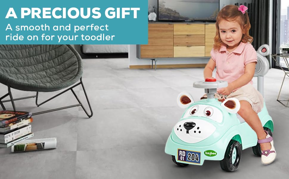 - 🚗Safe and Durable Design: Our push Ride-on Car is constructed by entirely premium virgin PVC plastic material which features non-toxic and odourless. It is secure for your baby to ride on freely. The anti-skid wide tires reduce noise and feature lightweight and shock-absorbing. The four-wheel structure can effectively prevent rollover.