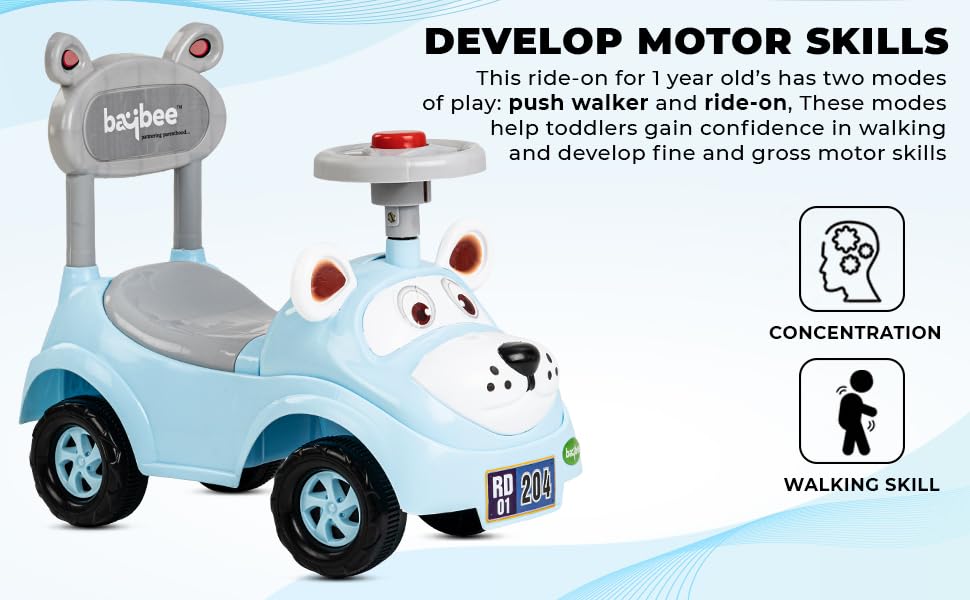 - 🚗Push Ride on Car - The baby Ride on car is designed to look like a Doggy which is classic and full of childishness. Your baby can play this ride on toy car by push mode and controls with the help of steering wheel.