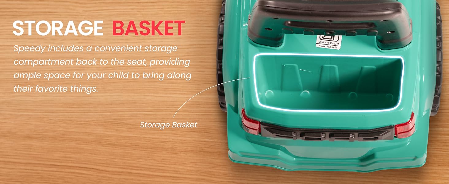 - LED Light & Musical Button: The Baybee Ride on car features LED lights that add a cool and vibrant touch to the Ride on. Additionally, it comes with a musical button that plays catchy tunes, enhancing the entertainment value for toddlers.