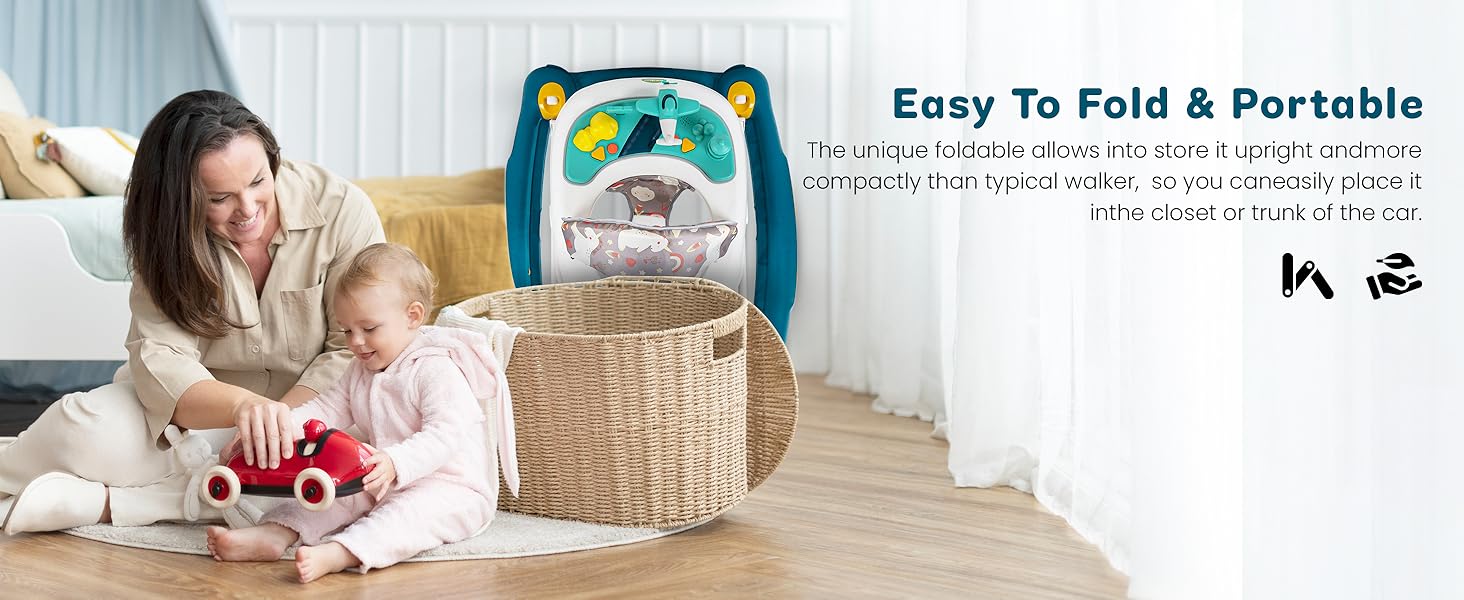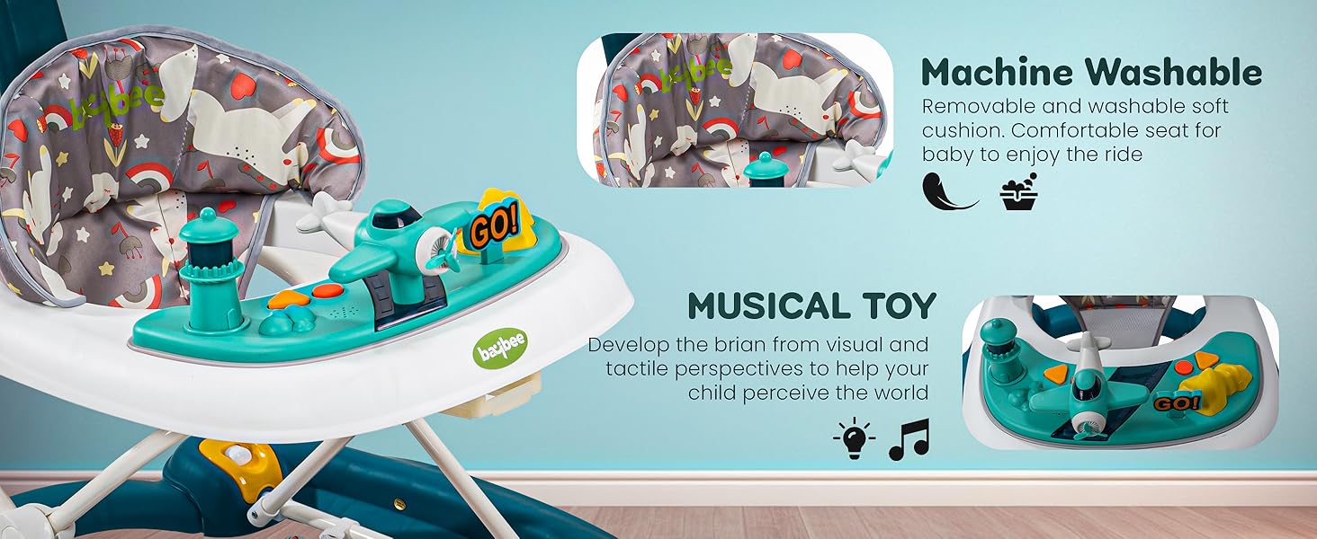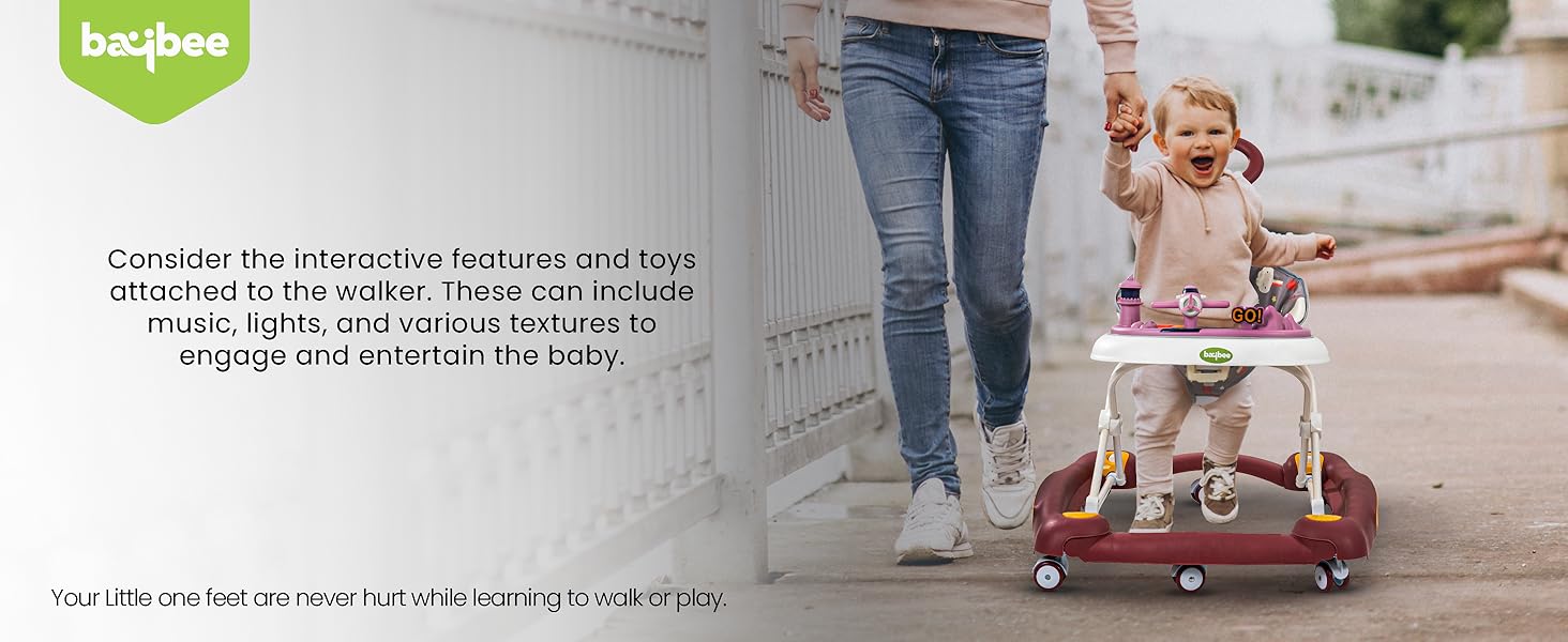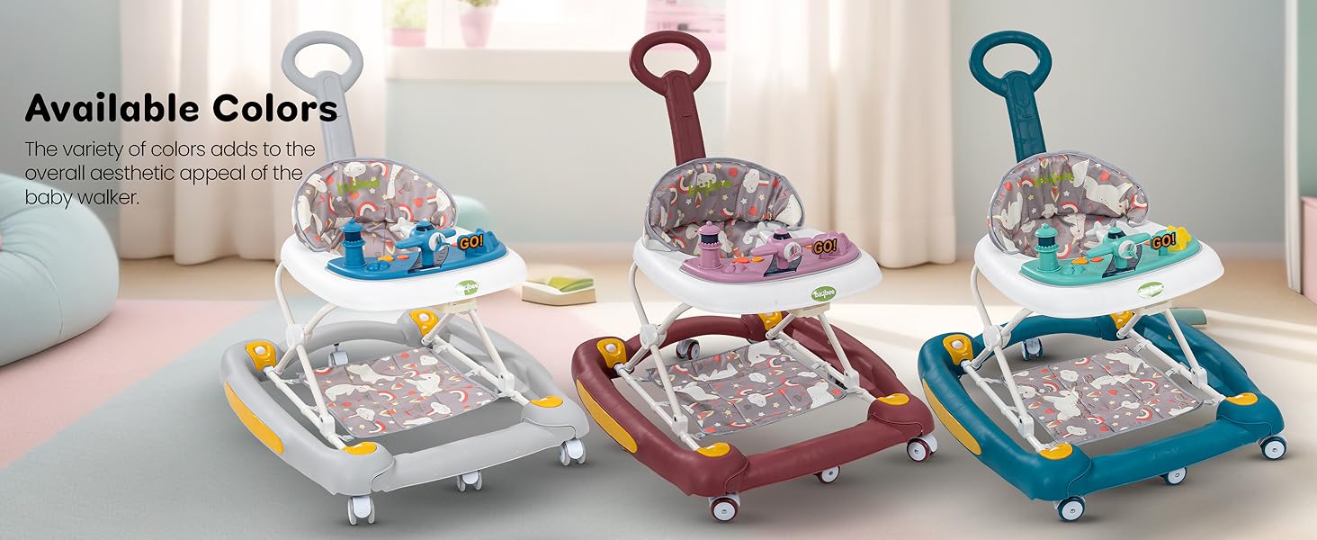 - Versatile and Compact Design: The Baybee Foldable Baby Walker is a multi-functional marvel, serving as a stroller for infants with the parental push handle, a traditional walker, and a push walker. Its compact design ensures easy storage, providing convenience for parents on the go.