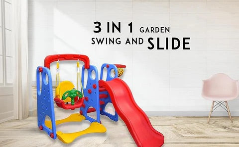 Minikin Super Wavy Combo Set For Kids (Wave Slide + Swing + Basketball) | Indoor & Outdoor | 1-5 Years