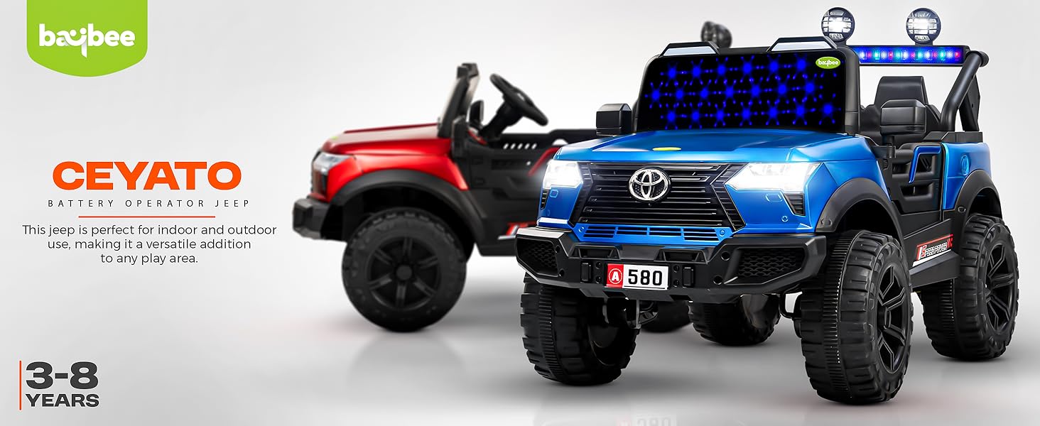 - ⏳ Prolonged Play and Discovery: The jeep is powered by a robust 12V battery, allowing for up to 40 minutes of non-stop play, ideal for extensive exploration and fun. The Baybee Rampage Jeep combines excitement with durability for memorable experiences. It comes with an easy-to-follow manual, making assembly simple and quick. This jeep is perfect for children aged 3 to 10 years 🛠️.