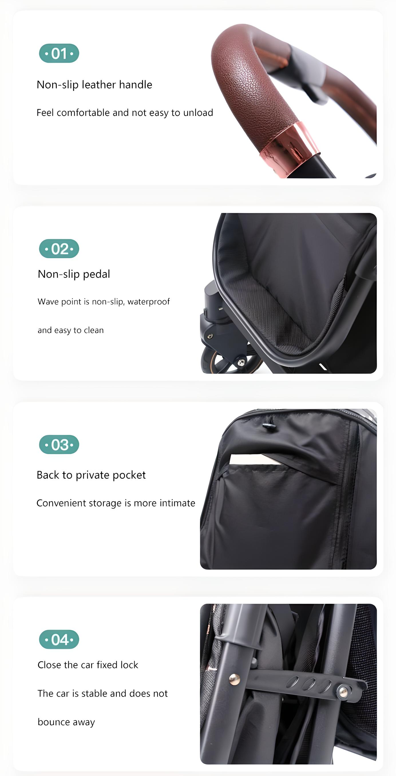 - Brakes: Rear and Front side brakes are available in the Ultra Multi-Adjustment Baby Stroller.