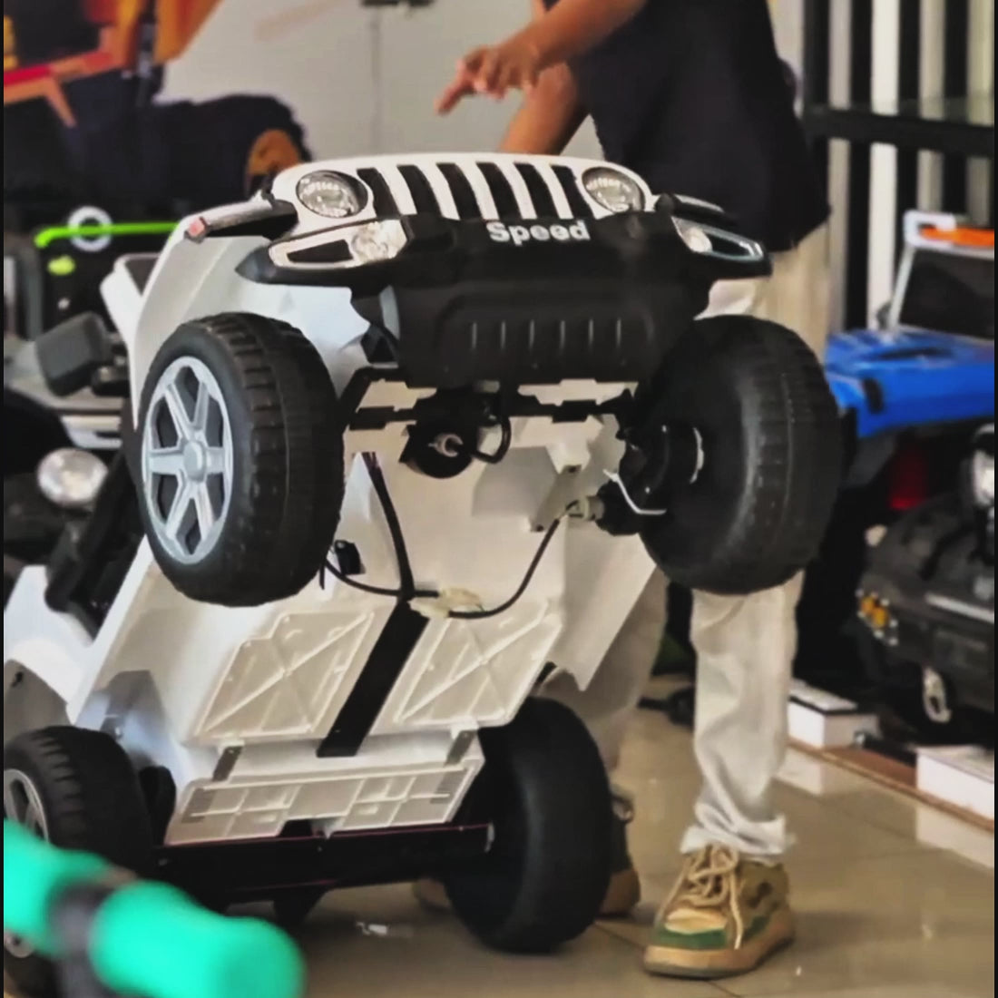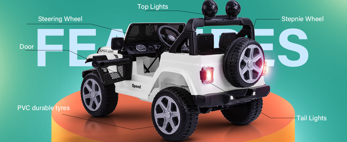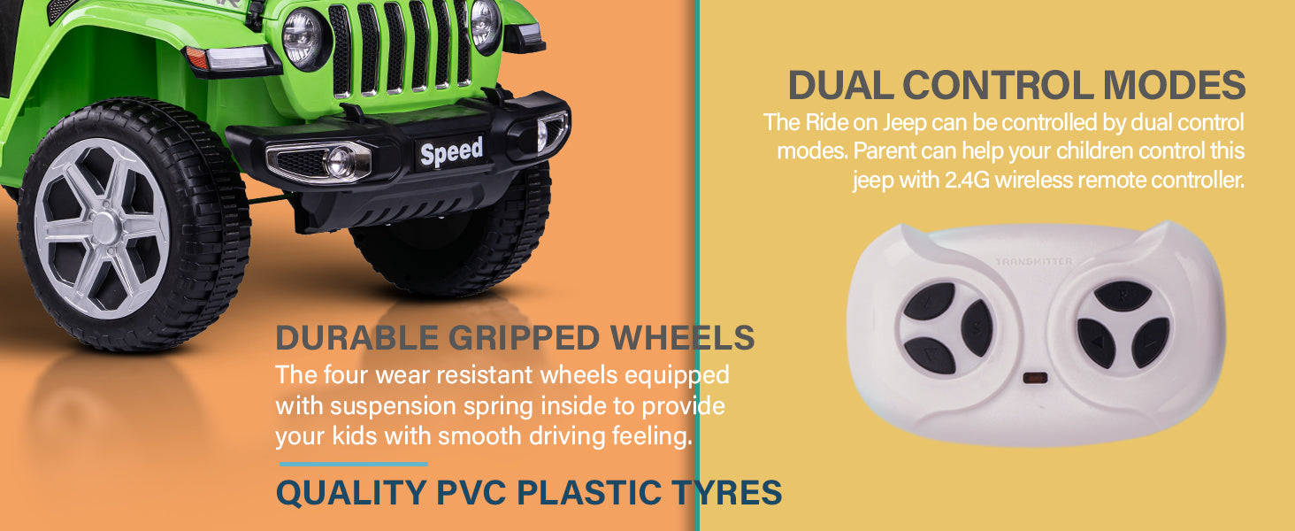 - π [Dual Mode Ride on Jeep] - The Ride on Jeep can be controlled by dual control modes. Parent can help your children control this jeep with 2.4G wireless remote controller or baby can operate this car by himself/herself by step on the accelerator, turn the steering wheel and shift the forward/backward moving mode, your kids will practice hand-eye-foot coordination, enhance courage, and build confidence through this wonderful vehicle