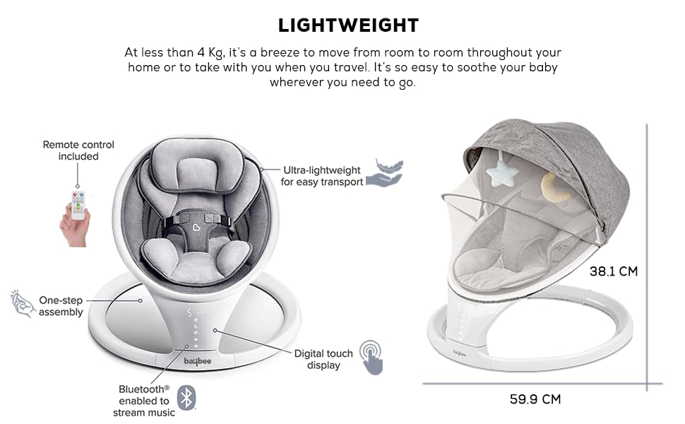 - Lightweight Design : it’s a breeze to move from room to room throughout your home or to take with you when you travel. It’s so easy to soothe your baby wherever you need to go.