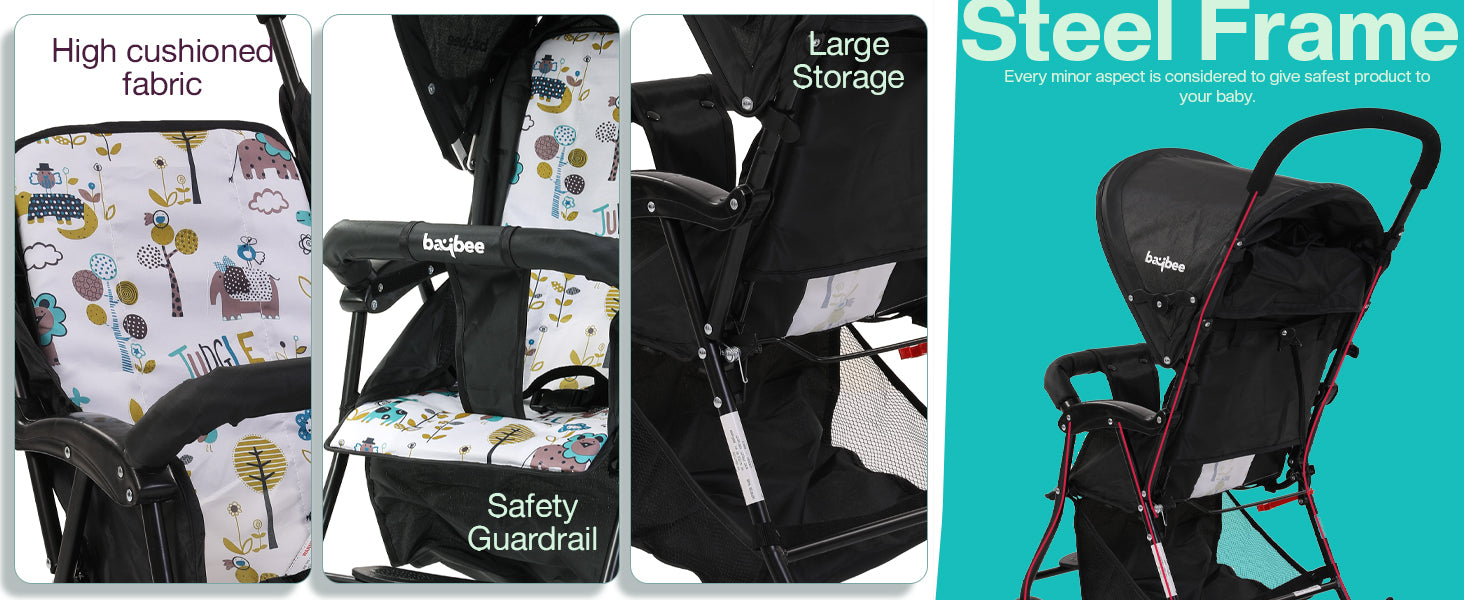 - 【Multiple Safety Protections】: Our baby stroller with features that create a superior and exceptionally safe ride for the baby, this stroller comes with a 3-point safety harness to keep the baby securely strapped in. Reflective material on the safety harness and piping enables safe nighttime strolls.